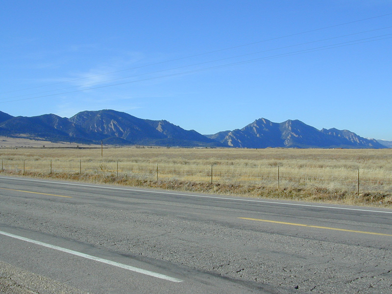 I've made many trips to the ice skating rink at the Apex Center in the township of Arvada, about 20 minutes drive south of Boulder. This time, I decided to take some photos of the scenery along the way. Unfortunately, it was only 2:30 pm in the afternoon so the landscape looked a little plain in colour at that time of day. The best times to take photos is when the sun sets. That's when the scenery turns a very nice red colour, including the sky. I pulled over onto the side of the road along the way to capture a few nice scenes. The fields and plains are part of the natural scenery between the towns and cities. To the west are the big mountains where the scenery is quite different.