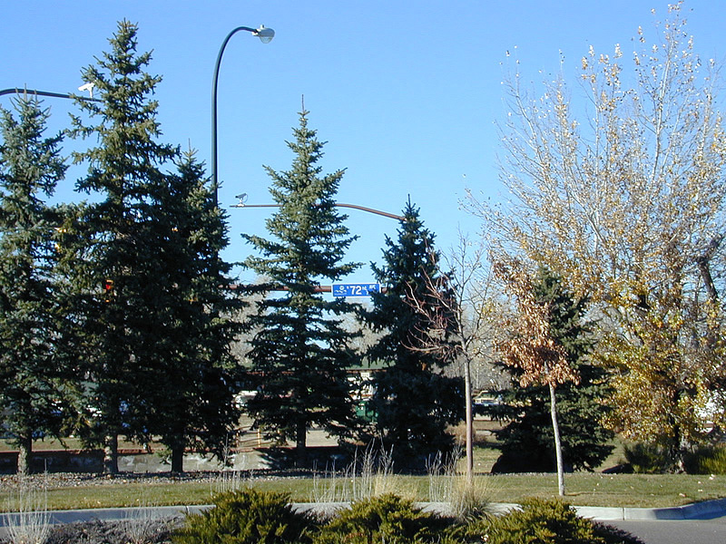 A photo of the street sign photographed from the Apex Center 13150 West 72nd Avenue in Arvada. The Apex Center is a really big recreational center. They have lots of things inside the complex, like a water-park with tube-slides, fitness gyms, aerobics gym, arcade games, indoor climbing gym, and two large ice skating rinks.