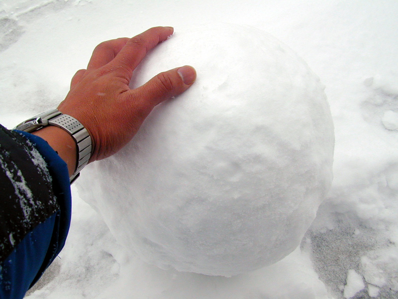 A close-up of my snowball. It was fun to make, but very cold, so my hand has turned red!